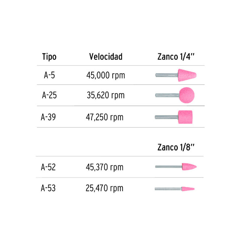 Juegos de 5 piedras montadas zanco 1/4" y 1/8" UsoGeneral Truper 102632