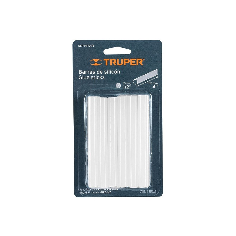 Barra de Silicona 1/2 10cm, Glue Sticks Blister 12pzas, Truper 17538