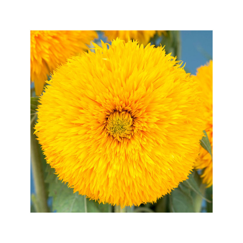 Curiosidad: El 'Double Sunking' es una variedad de girasol que destaca por sus flores completamente dobles de color amarillo dorado, presentando una apariencia esponjosa y voluminosa.