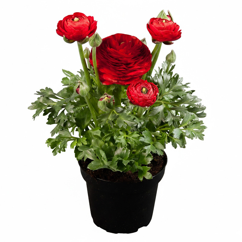 Ranúnculo compacto en maceta que florece a temperaturas relativamente frías.