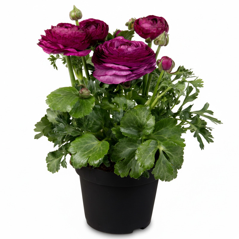 Ranúnculo compacto en maceta que florece a temperaturas relativamente frías.