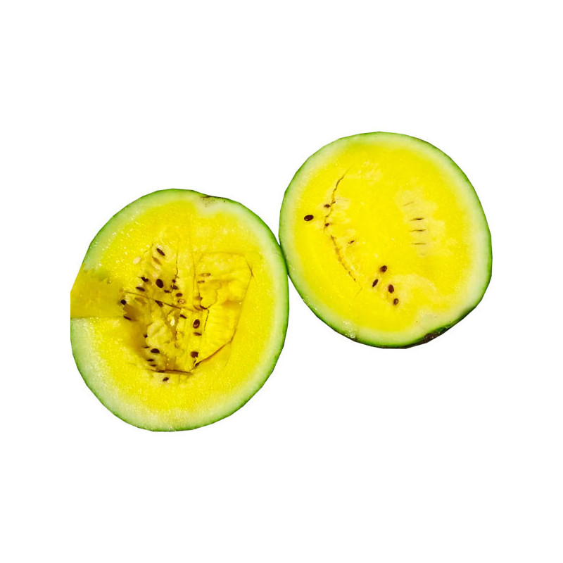 Frutos tipo dragón, tipo personal, maduración precoz, frutos redondos de pulpa color amarillo intenso muy dulce, peso promedio 3.5 – 4.0 Kg.