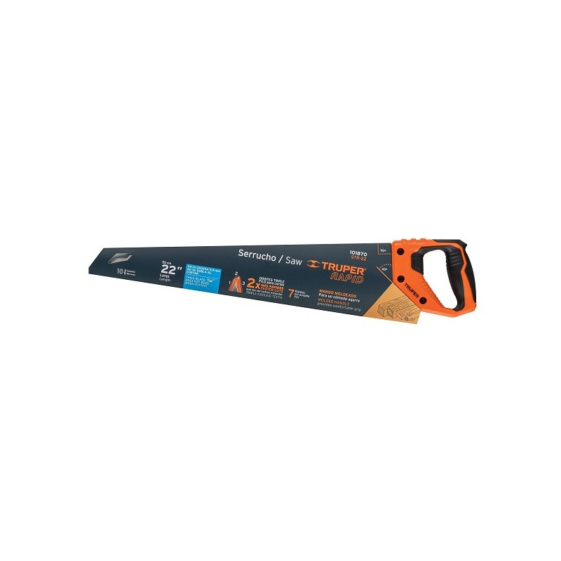 Serrucho Rapid 22" 55cm DDP7 TripleFilo, Mango Comfort grip, Truper 101870