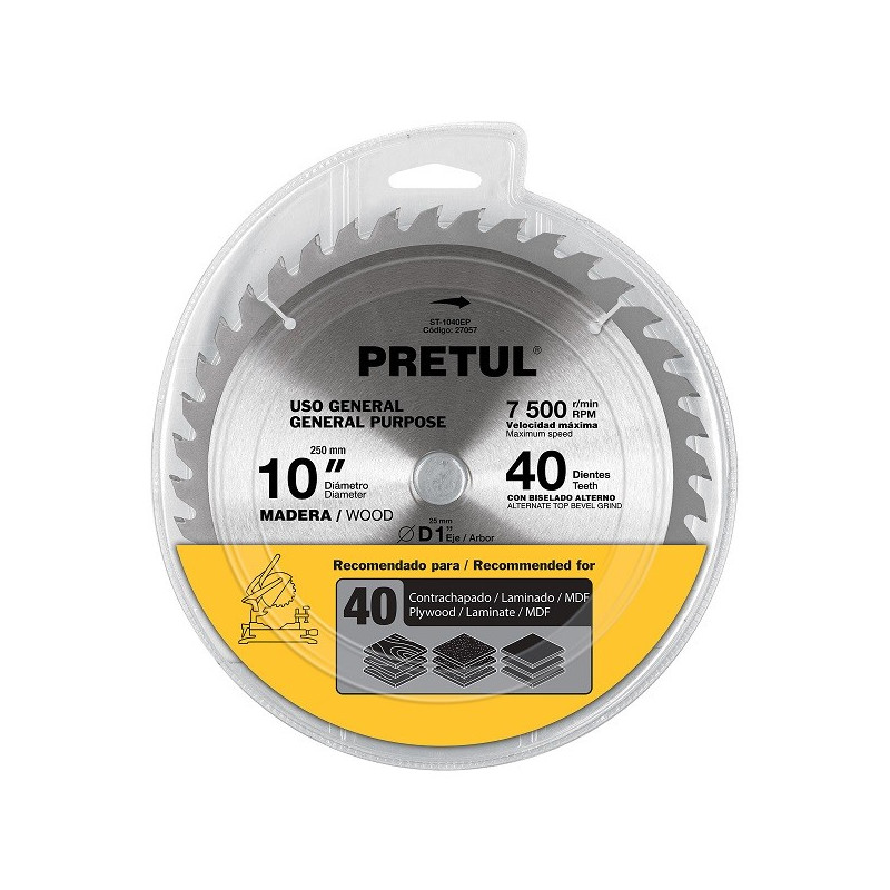 Discos sierras 10" 40Dientes C1", para madera, Pretul 27057