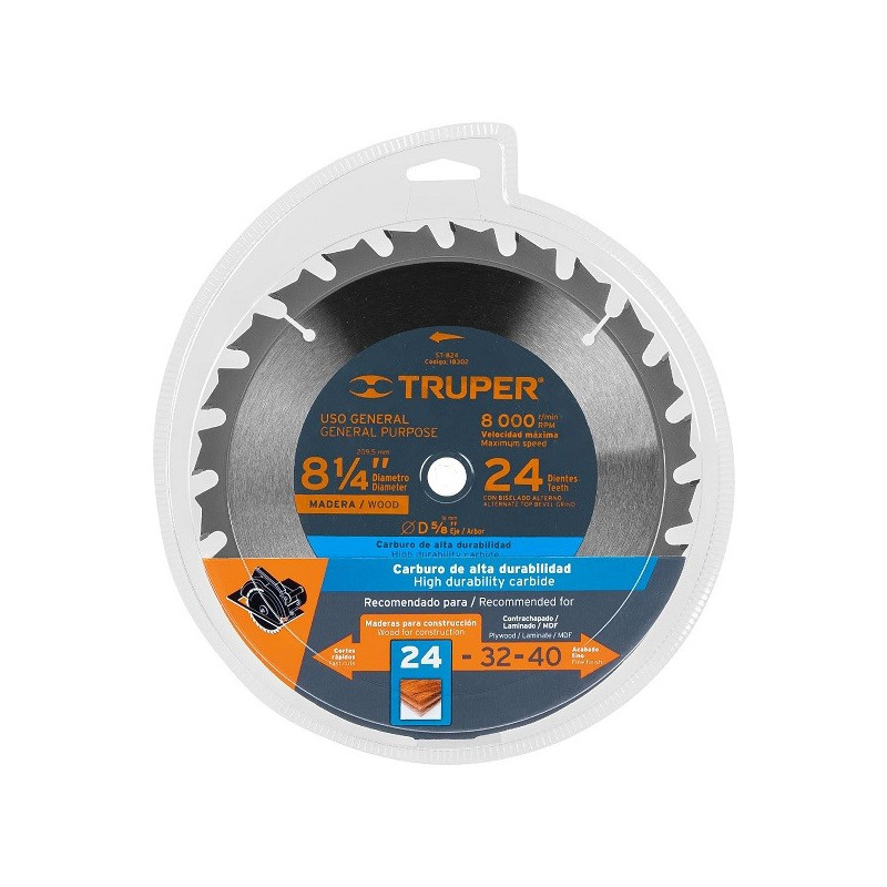 Discos Sierras 8-1/4" 24Dientes C5/8" para madera, Truper 18302