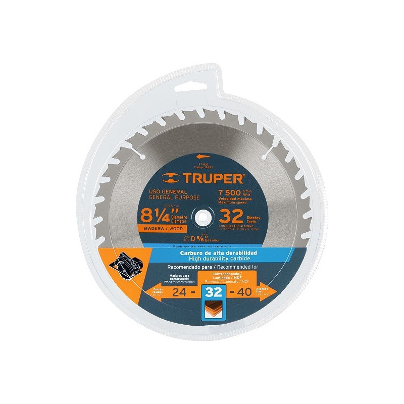 Discos Sierras 8-1/4" 32Dientes C5/8" para madera, Truper 12682